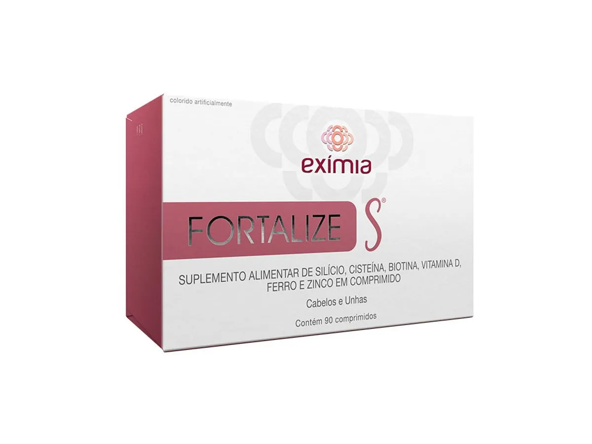 Eximia Fortalize S é um suplemento alimentar com silício, cisteína, ferro, zinco, biotina e Vitamina D, além de outras vitaminas e minerais, sem glúten, que auxilia em questões como a queda capilar e o fortalecimento das unhas.